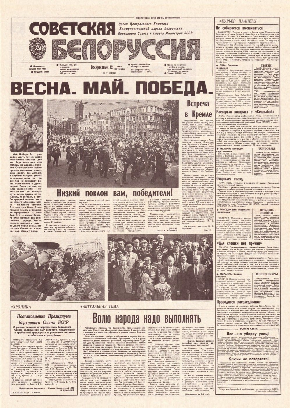 «Советская Белоруссия» — орган Центрального Комитета Коммунистической партии Белоруссии, Верховного Совета и Совета Министров БССР. Белорусская общественно-политическая газета. Издаётся с августа 1927 года. Выходит 5 раз в неделю. Учредители — Администрация президента Республики Беларусь и редакционный совет. На апрель 2019 года тираж — 190 тыс. экземпляров. Крупнейшее печатное СМИ страны. При этом во многих СМИ неоднократно сообщалось ... More »