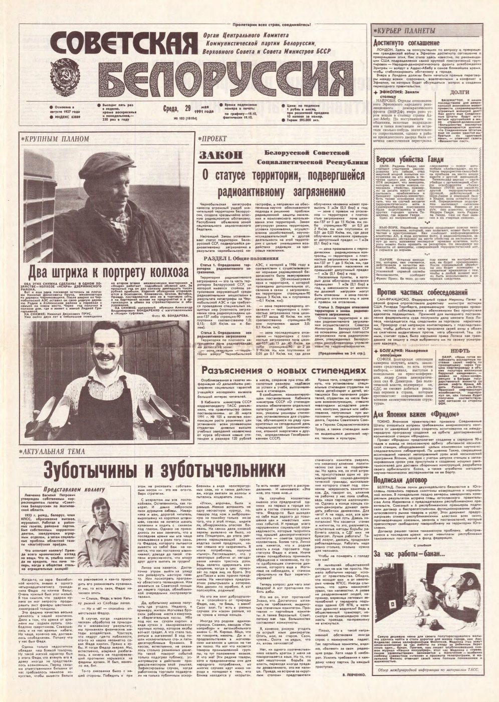 «Советская Белоруссия» — орган Центрального Комитета Коммунистической партии Белоруссии, Верховного Совета и Совета Министров БССР. Белорусская общественно-политическая газета. Издаётся с августа 1927 года. Выходит 5 раз в неделю. Учредители — Администрация президента Республики Беларусь и редакционный совет. На апрель 2019 года тираж — 190 тыс. экземпляров. Крупнейшее печатное СМИ страны. При этом во многих СМИ неоднократно сообщалось ... Болей »