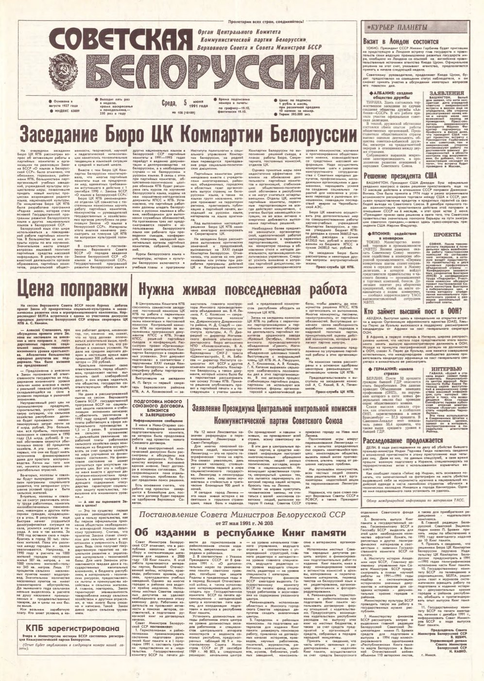 Выдавец: Центральный Комитет Коммунистической партии Белоруссии, Верховний Совет, Совет Министров БССР