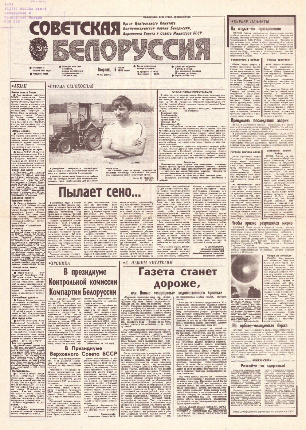 «Советская Белоруссия» — орган Центрального Комитета Коммунистической партии Белоруссии, Верховного Совета и Совета Министров БССР. Белорусская общественно-политическая газета. Издаётся с августа 1927 года. Выходит 5 раз в неделю. Учредители — Администрация президента Республики Беларусь и редакционный совет. На апрель 2019 года тираж — 190 тыс. экземпляров. Крупнейшее печатное СМИ страны. При этом во многих СМИ неоднократно сообщалось ... Болей »