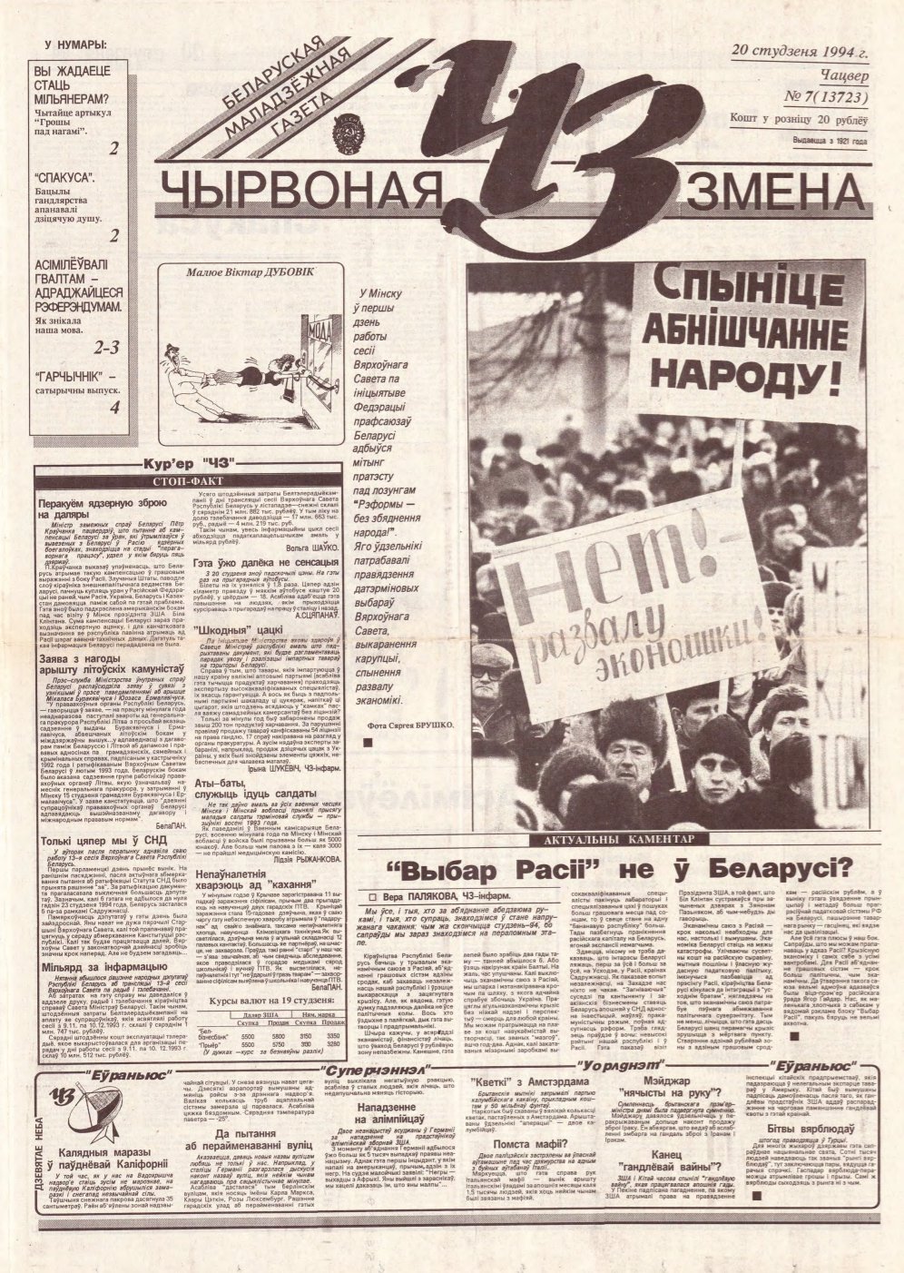 «Чырвоная змена» — беларуская маладзёжная газета. У 1921—2002 гадах з’яўлялася самастойным выданнем. З 2002 года дадатак да газеты «Звязда». З «Чырвонай зменай» ахвотна супрацоўнічаў Уладзімір Караткевіч, тут апублікаваны многія яго вершаваныя творы і эсэ: «Сплятайце рукі», «У тую ноч», «Як стажары ў небе заззялі», «Твой зорны шлях». На старонках газеты была апублікавана і аповесць Васіля Быкава «Жураўліны крык». Болей »