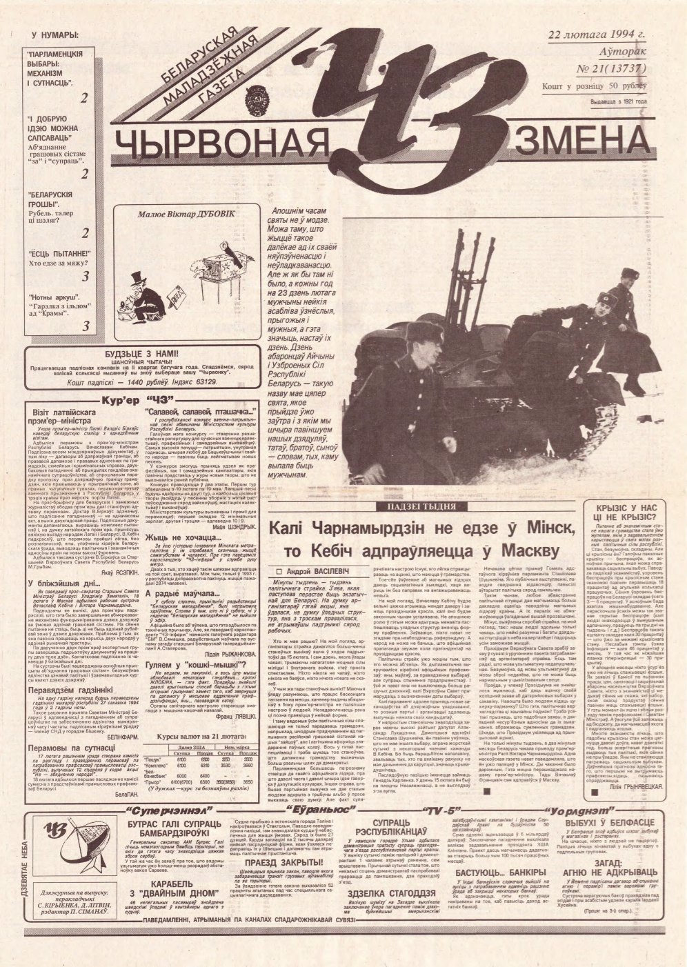 «Чырвоная змена» — беларуская маладзёжная газета. У 1921—2002 гадах з’яўлялася самастойным выданнем. З 2002 года дадатак да газеты «Звязда». З «Чырвонай зменай» ахвотна супрацоўнічаў Уладзімір Караткевіч, тут апублікаваны многія яго вершаваныя творы і эсэ: «Сплятайце рукі», «У тую ноч», «Як стажары ў небе заззялі», «Твой зорны шлях». На старонках газеты была апублікавана і аповесць Васіля Быкава «Жураўліны крык». Болей »