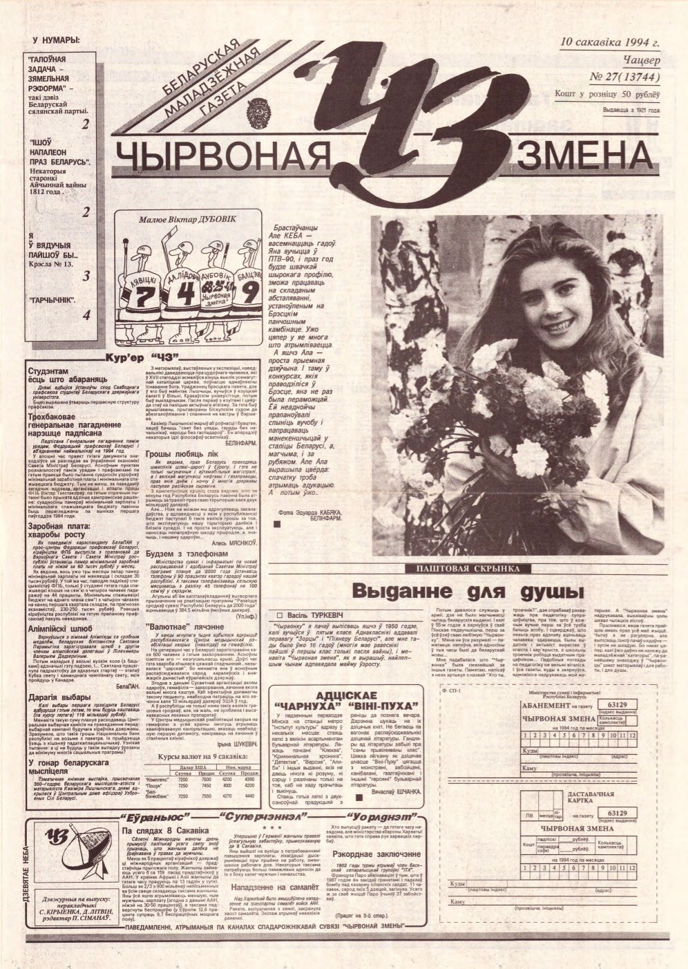 «Чырвоная змена» — беларуская маладзёжная газета. У 1921—2002 гадах з’яўлялася самастойным выданнем. З 2002 года дадатак да газеты «Звязда». З «Чырвонай зменай» ахвотна супрацоўнічаў Уладзімір Караткевіч, тут апублікаваны многія яго вершаваныя творы і эсэ: «Сплятайце рукі», «У тую ноч», «Як стажары ў небе заззялі», «Твой зорны шлях». На старонках газеты была апублікавана і аповесць Васіля Быкава «Жураўліны крык». Болей »