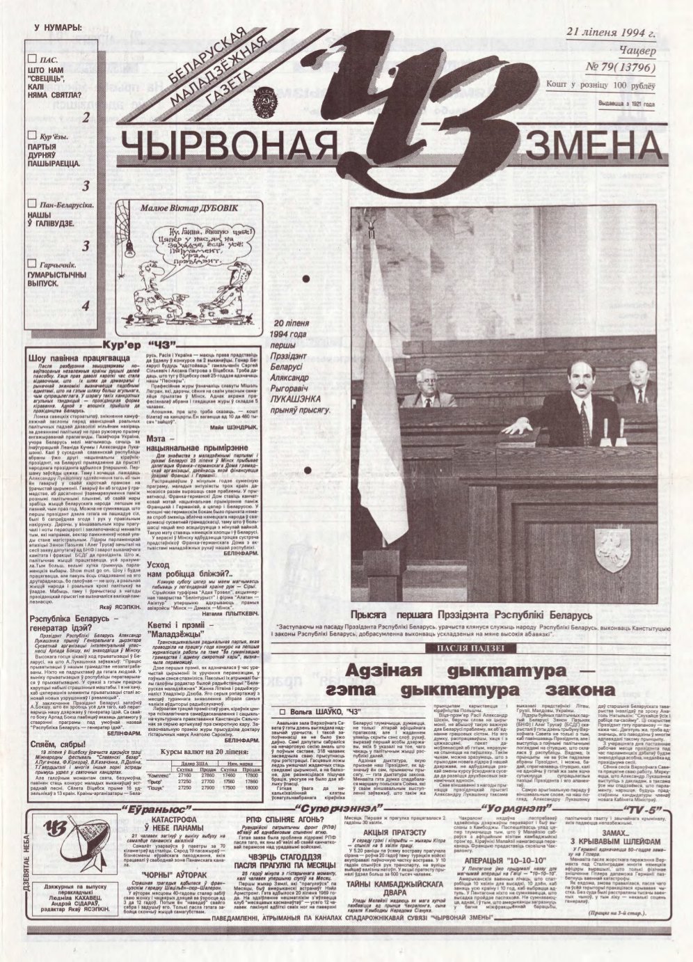 «Чырвоная змена» — беларуская маладзёжная газета. У 1921—2002 гадах з’яўлялася самастойным выданнем. З 2002 года дадатак да газеты «Звязда». З «Чырвонай зменай» ахвотна супрацоўнічаў Уладзімір Караткевіч, тут апублікаваны многія яго вершаваныя творы і эсэ: «Сплятайце рукі», «У тую ноч», «Як стажары ў небе заззялі», «Твой зорны шлях». На старонках газеты была апублікавана і аповесць Васіля Быкава «Жураўліны крык». Болей »
