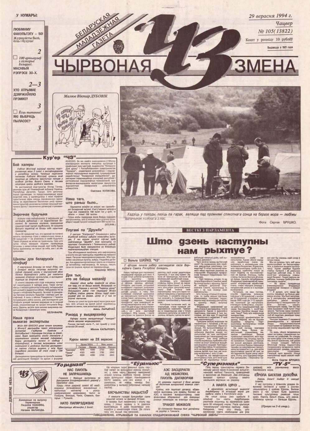 «Чырвоная змена» — беларуская маладзёжная газета. У 1921—2002 гадах з’яўлялася самастойным выданнем. З 2002 года дадатак да газеты «Звязда». З «Чырвонай зменай» ахвотна супрацоўнічаў Уладзімір Караткевіч, тут апублікаваны многія яго вершаваныя творы і эсэ: «Сплятайце рукі», «У тую ноч», «Як стажары ў небе заззялі», «Твой зорны шлях». На старонках газеты была апублікавана і аповесць Васіля Быкава «Жураўліны крык». Болей »