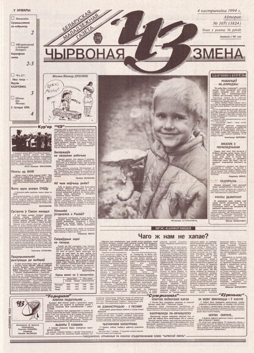 «Чырвоная змена» — беларуская маладзёжная газета. У 1921—2002 гадах з’яўлялася самастойным выданнем. З 2002 года дадатак да газеты «Звязда». З «Чырвонай зменай» ахвотна супрацоўнічаў Уладзімір Караткевіч, тут апублікаваны многія яго вершаваныя творы і эсэ: «Сплятайце рукі», «У тую ноч», «Як стажары ў небе заззялі», «Твой зорны шлях». На старонках газеты была апублікавана і аповесць Васіля Быкава «Жураўліны крык». Болей »