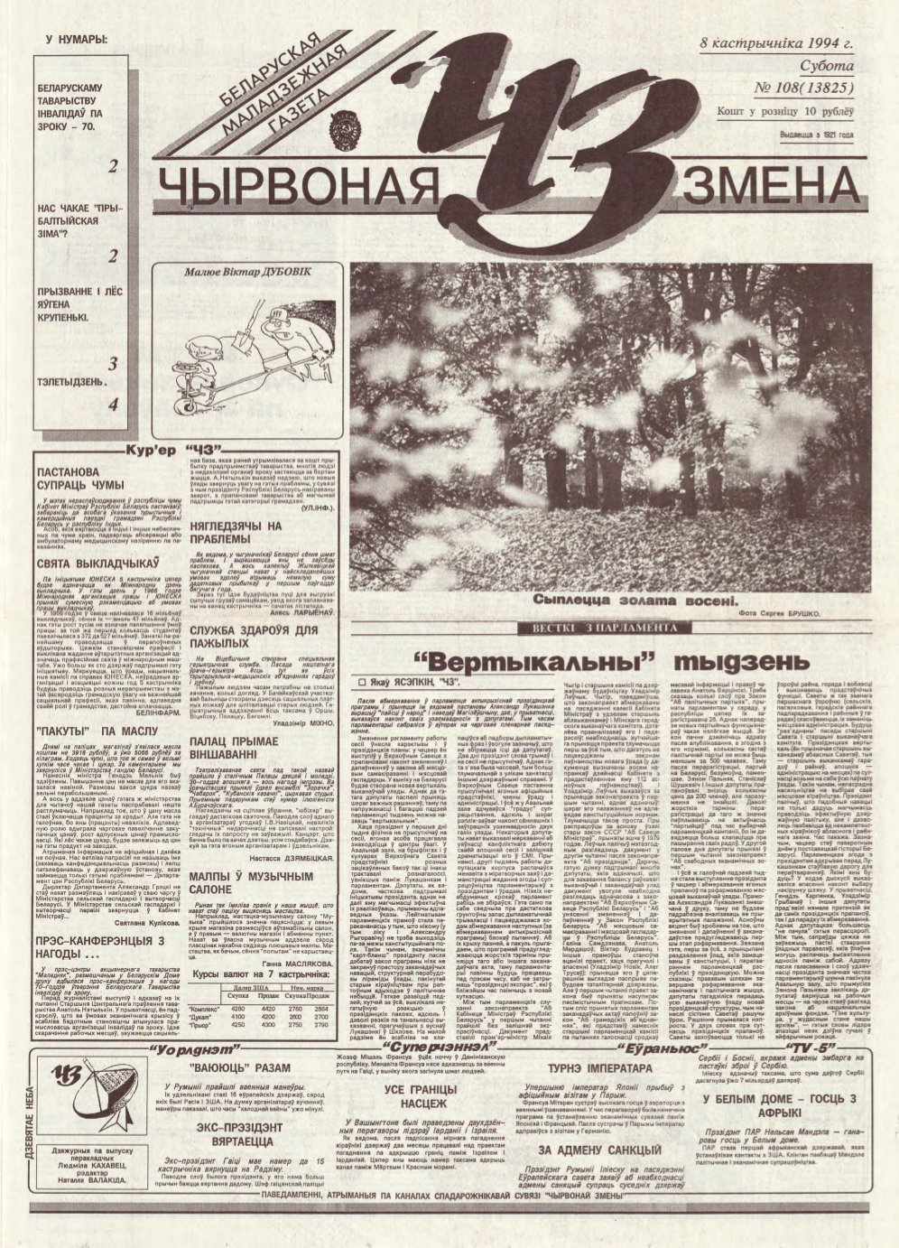 «Чырвоная змена» — беларуская маладзёжная газета. У 1921—2002 гадах з’яўлялася самастойным выданнем. З 2002 года дадатак да газеты «Звязда». З «Чырвонай зменай» ахвотна супрацоўнічаў Уладзімір Караткевіч, тут апублікаваны многія яго вершаваныя творы і эсэ: «Сплятайце рукі», «У тую ноч», «Як стажары ў небе заззялі», «Твой зорны шлях». На старонках газеты была апублікавана і аповесць Васіля Быкава «Жураўліны крык». Болей »