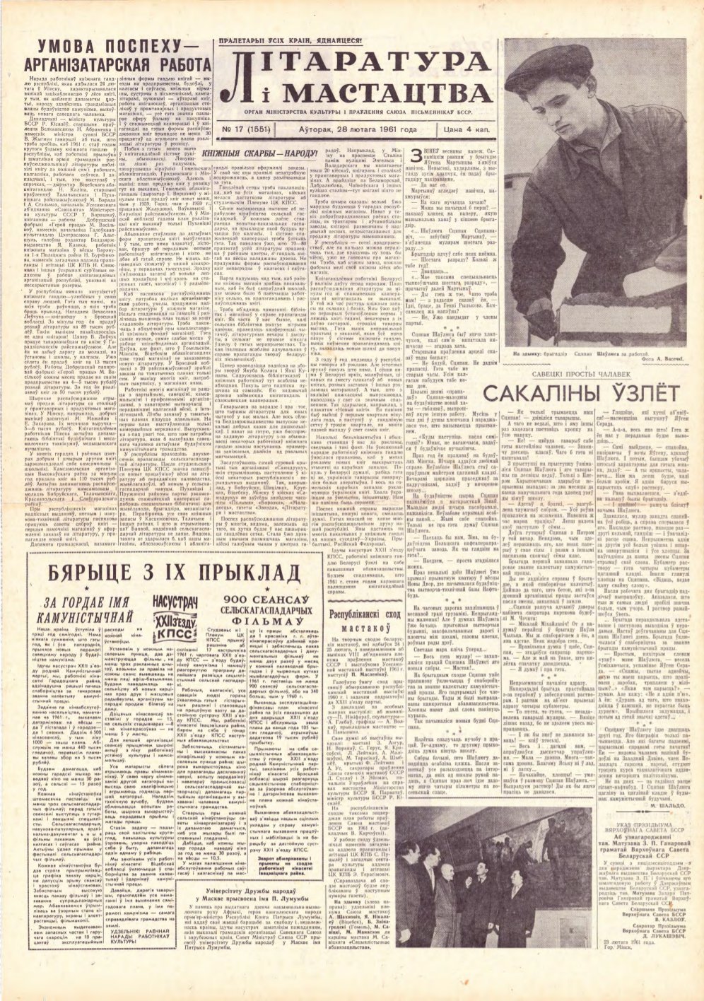 Выдавец: Міністэрства культуры БССР, Праўленне Саюза пісьменнікаў БССР