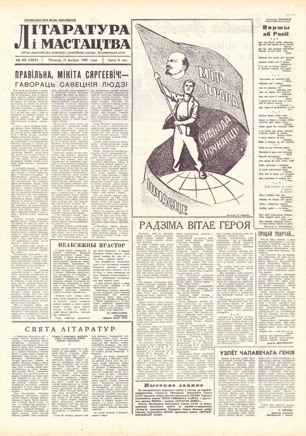Заснаваная ў 1932 годзе. Выходзіла ў Мінску адзін раз на тыдзень (па пятніцах) на беларускай мове на 16 старонках (у 1957—1970 гадах выдавалася двойчы на тыдзень). У Вялікую Айчынную вайну не выходзіла. Выданне адноўлена ў красавіку 1945 года. Свае першыя творы на старонках «ЛіМ» публікавалі Іван Мележ, Іван Шамякін, Васіль Быкаў, Уладзімір Караткевіч, Яўгенія Янішчыц, Алесь Разанаў, Алесь Пісьмянкоў і іншыя вядомыя беларускія пісьменні... Болей »