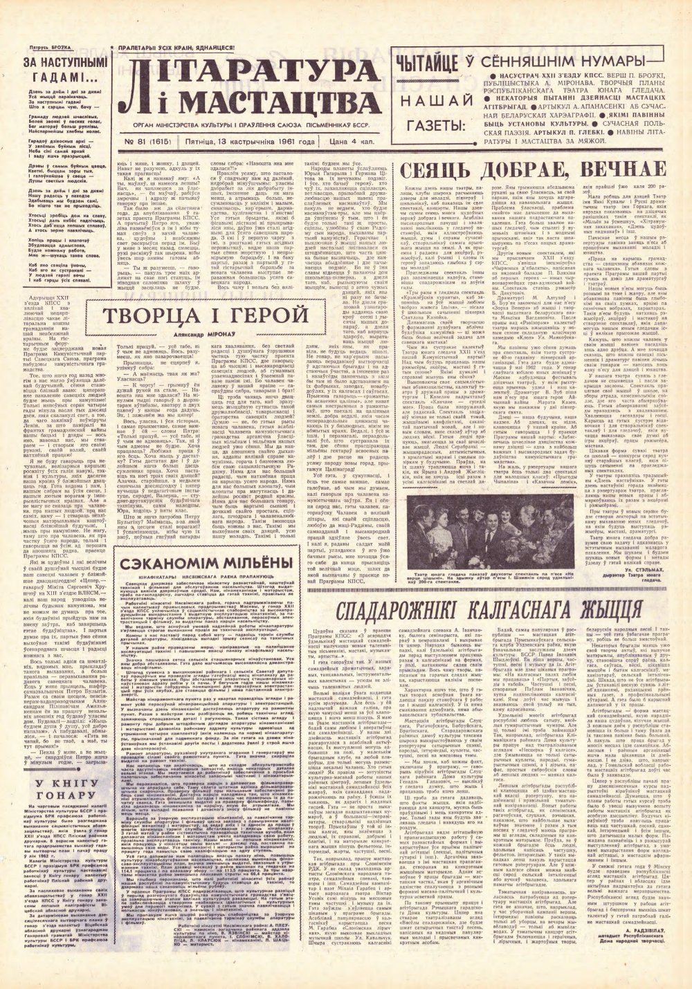 Заснаваная ў 1932 годзе. Выходзіла ў Мінску адзін раз на тыдзень (па пятніцах) на беларускай мове на 16 старонках (у 1957—1970 гадах выдавалася двойчы на тыдзень). У Вялікую Айчынную вайну не выходзіла. Выданне адноўлена ў красавіку 1945 года. Свае першыя творы на старонках «ЛіМ» публікавалі Іван Мележ, Іван Шамякін, Васіль Быкаў, Уладзімір Караткевіч, Яўгенія Янішчыц, Алесь Разанаў, Алесь Пісьмянкоў і іншыя вядомыя беларускія пісьменні... Болей »