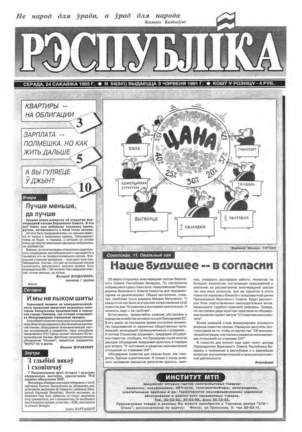 «Рэспубліка» — газета для тых, хто самастойна прымае рашэнні. Заснавальнік - Савет Міністраў Рэспублікі Беларусь. Выдаецца з чэрвеня 1991. Газета выходзіць 250 разоў у год. Аўтары апублікаваных матэрыялаў нясуць адказнасць за падбор і дакладнасць фактаў, іх меркаванні неабавязкова адлюстроўваюць пункт гледжання рэдакцыі. Рукапісы, фотаздымкі і малюнкі не рэцэнзуюцца I не вяртаюцца. Болей »