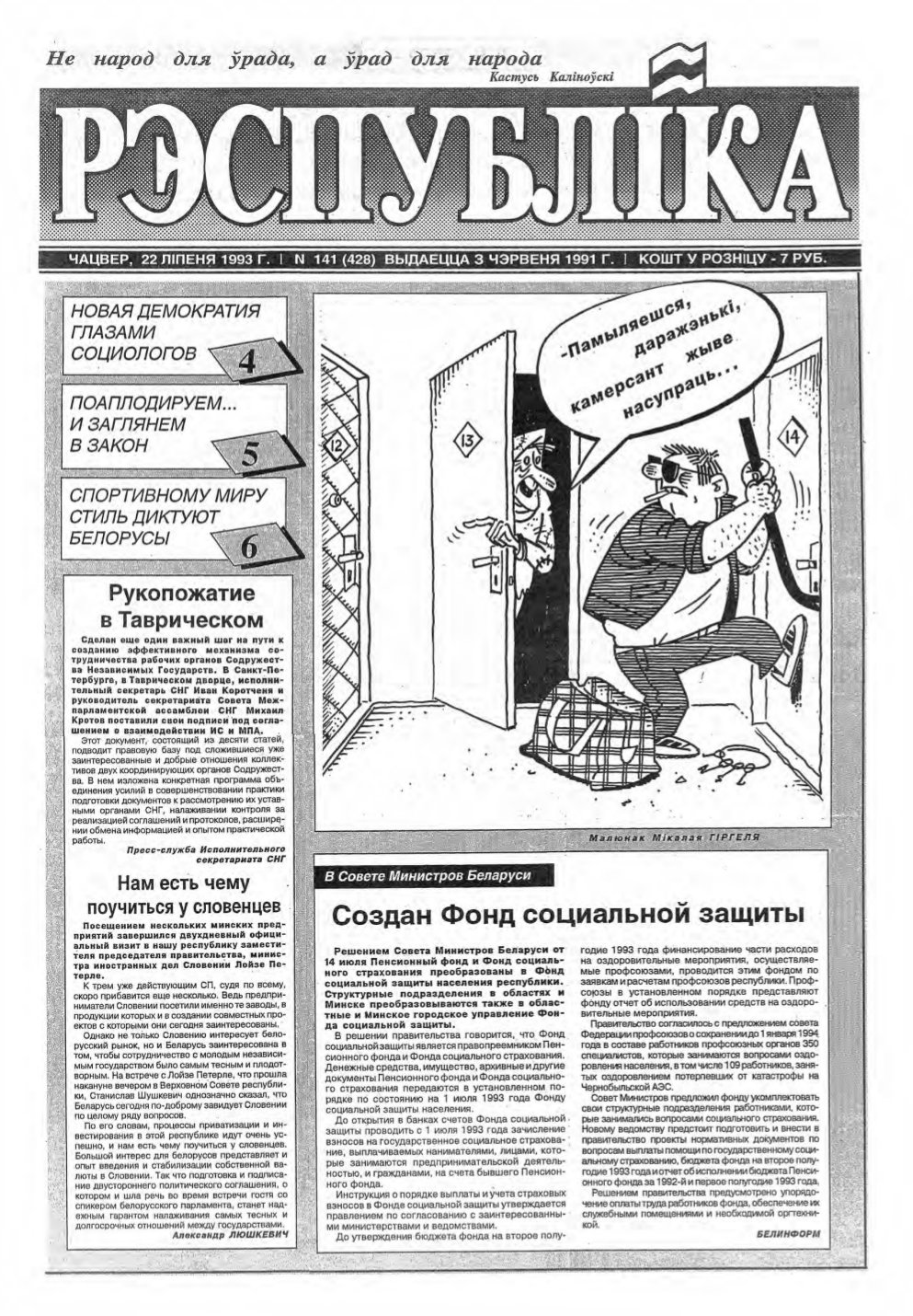 «Рэспубліка» — газета для тых, хто самастойна прымае рашэнні. Заснавальнік - Савет Міністраў Рэспублікі Беларусь. Выдаецца з чэрвеня 1991. Газета выходзіць 250 разоў у год. Аўтары апублікаваных матэрыялаў нясуць адказнасць за падбор і дакладнасць фактаў, іх меркаванні неабавязкова адлюстроўваюць пункт гледжання рэдакцыі. Рукапісы, фотаздымкі і малюнкі не рэцэнзуюцца і не вяртаюцца. Болей »
