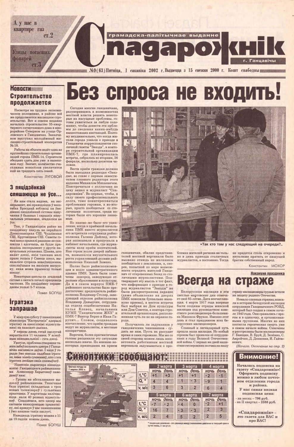 «Спадарожнікс» — грамадска-палітычнае выданне. Рукапісы і здымкі не рэцэнзуюцца і не вяртаюцца. Адказнасць за дакладнасць друкуемых фактаў і падзей нясуць аўтары. Выказаныя ў дасланых матэрыялах думкі могуць не супадаць з пунктам гледжання рэдакцыі газеты і не накладаюць на яе ніякіх абавязкаў. Адказнасць за змест рэкламы нясуць рэкламадаўцы. Болей »