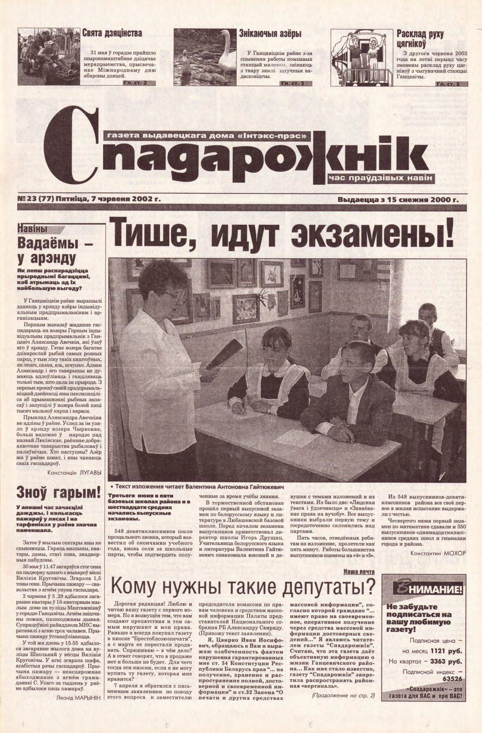 «Спадарожнікс» — грамадска-палітычнае выданне. Рукапісы і здымкі не рэцэнзуюцца і не вяртаюцца. Адказнасць за дакладнасць друкуемых фактаў і падзей нясуць аўтары. Выказаныя ў дасланых матэрыялах думкі могуць не супадаць з пунктам гледжання рэдакцыі газеты і не накладаюць на яе ніякіх абавязкаў. Адказнасць за змест рэкламы нясуць рэкламадаўцы. Болей »