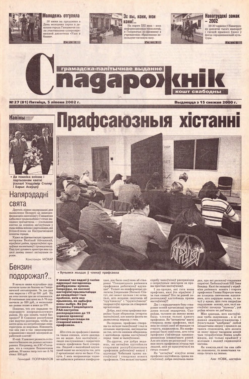 «Спадарожнікс» — грамадска-палітычнае выданне. Рукапісы і здымкі не рэцэнзуюцца і не вяртаюцца. Адказнасць за дакладнасць друкуемых фактаў і падзей нясуць аўтары. Выказаныя ў дасланых матэрыялах думкі могуць не супадаць з пунктам гледжання рэдакцыі газеты і не накладаюць на яе ніякіх абавязкаў. Адказнасць за змест рэкламы нясуць рэкламадаўцы. Болей »