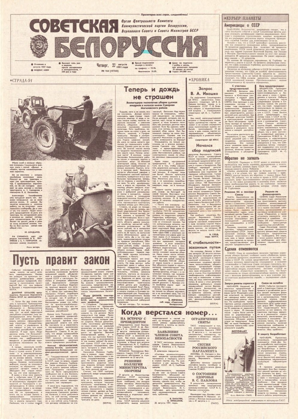 «Советская Белоруссия» — орган Центрального Комитета Коммунистической партии Белоруссии, Верховного Совета и Совета Министров БССР. Белорусская общественно-политическая газета. Издаётся с августа 1927 года. Выходит 5 раз в неделю. Учредители — Администрация президента Республики Беларусь и редакционный совет. На апрель 2019 года тираж — 190 тыс. экземпляров. Крупнейшее печатное СМИ страны. При этом во многих СМИ неоднократно сообщалось ... Болей »
