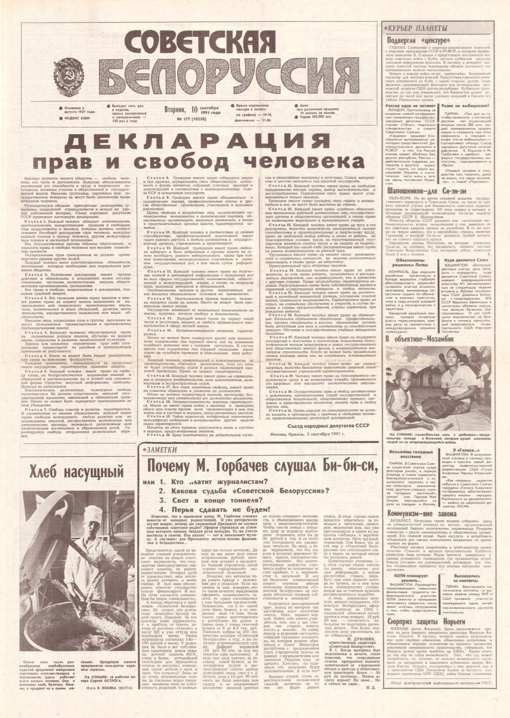 «Советская Белоруссия» — орган Центрального Комитета Коммунистической партии Белоруссии, Верховного Совета и Совета Министров БССР. Белорусская общественно-политическая газета. Издаётся с августа 1927 года. Выходит 5 раз в неделю. Учредители — Администрация президента Республики Беларусь и редакционный совет. На апрель 2019 года тираж — 190 тыс. экземпляров. Крупнейшее печатное СМИ страны. При этом во многих СМИ неоднократно сообщалось ... Болей »