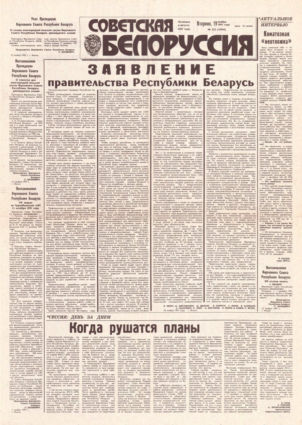 Советская Белоруссия, 223 (18304) 1991