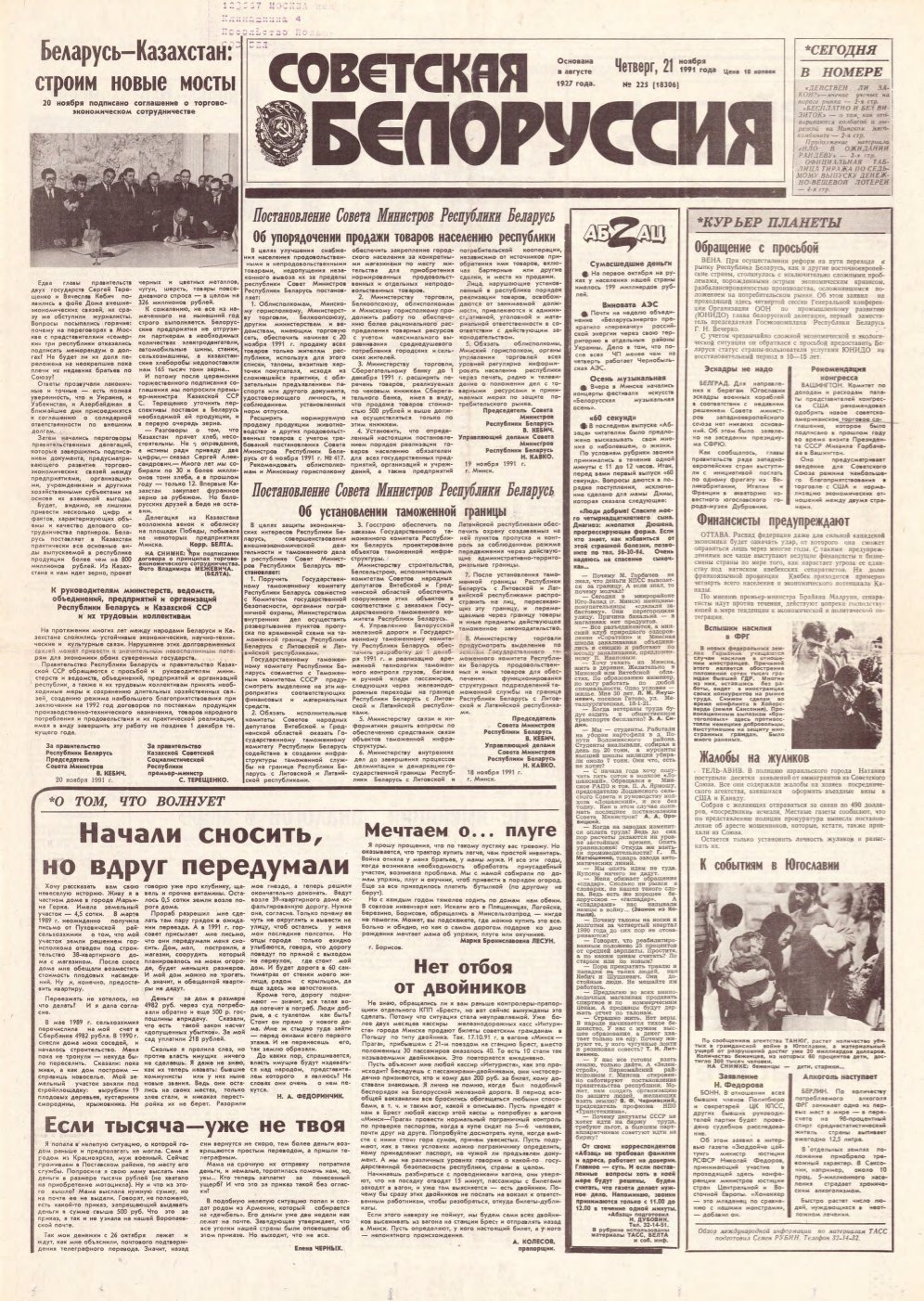 «Советская Белоруссия» — орган Центрального Комитета Коммунистической партии Белоруссии, Верховного Совета и Совета Министров БССР. Белорусская общественно-политическая газета. Издаётся с августа 1927 года. Выходит 5 раз в неделю. Учредители — Администрация президента Республики Беларусь и редакционный совет. На апрель 2019 года тираж — 190 тыс. экземпляров. Крупнейшее печатное СМИ страны. При этом во многих СМИ неоднократно сообщалось ... Болей »