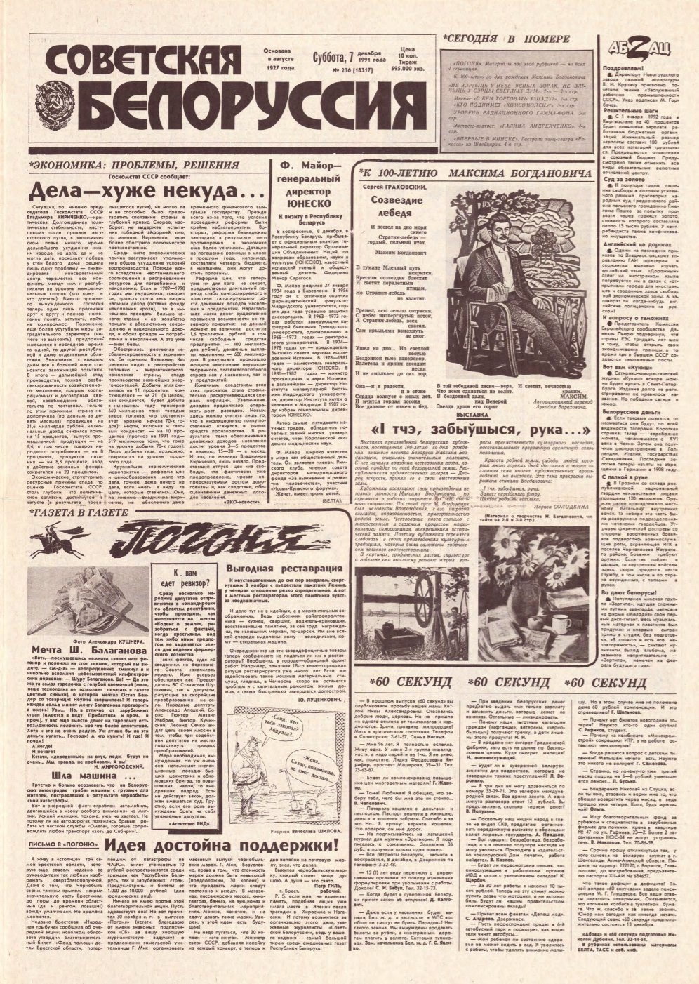«Советская Белоруссия» — орган Центрального Комитета Коммунистической партии Белоруссии, Верховного Совета и Совета Министров БССР. Белорусская общественно-политическая газета. Издаётся с августа 1927 года. Выходит 5 раз в неделю. Учредители — Администрация президента Республики Беларусь и редакционный совет. На апрель 2019 года тираж — 190 тыс. экземпляров. Крупнейшее печатное СМИ страны. При этом во многих СМИ неоднократно сообщалось ... Болей »