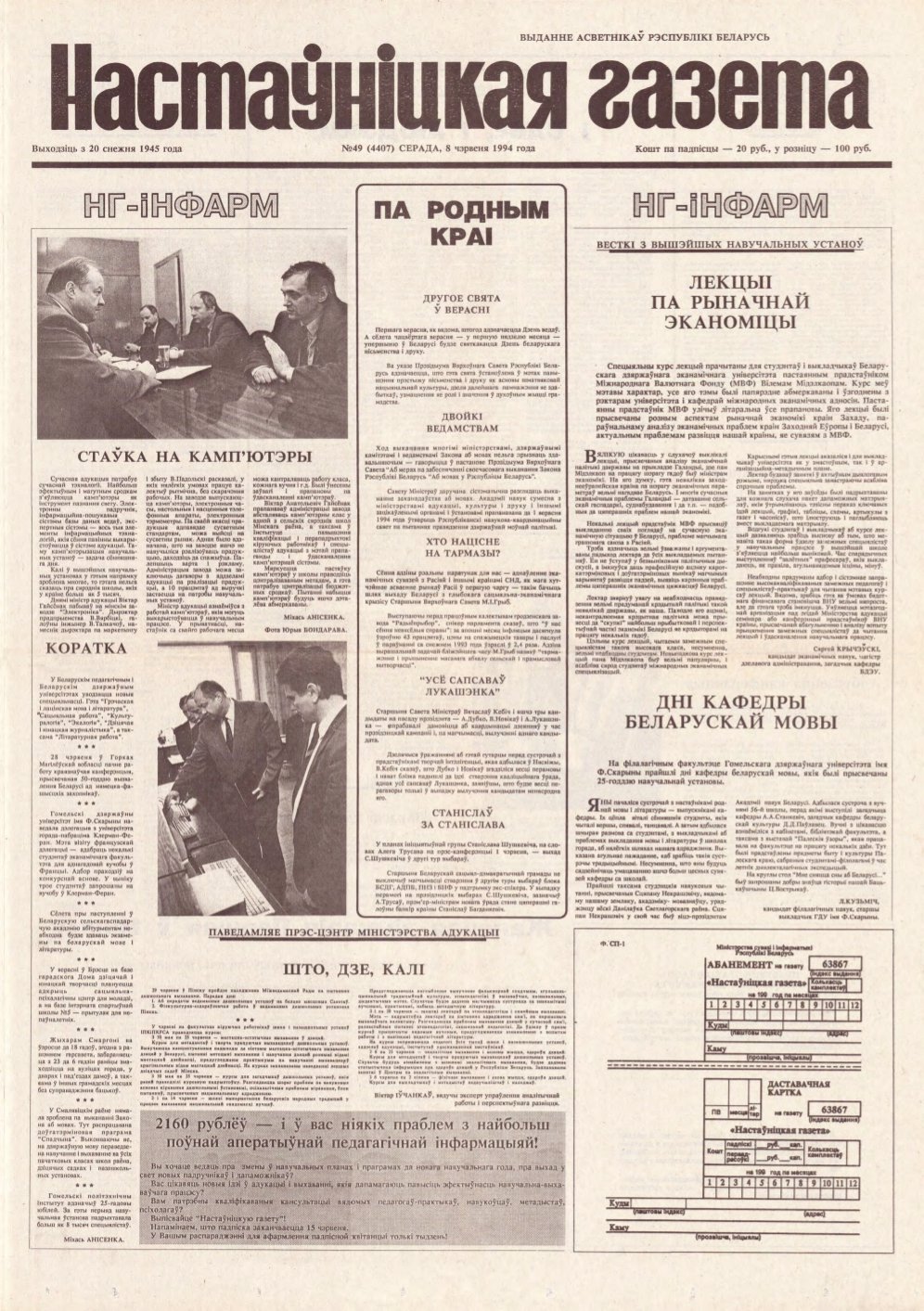«Настаўніцкая газета» — выданне асветнікаў Рэспублікі Беларусь. Заснавана Міністэрствам адукацыі Рэспублікі Беларусь, выдаецца рэдакцыйна-выдавецкай установай «Выдавецкі дом „Педагагічная прэса“». Выходзіць з 20 снежня 1945 года ў Мінску на беларускай мове (да 1957 года — 1 раз, з 1958 года — 2 разы, з 1998 года — 3 разы на тыдзень). У ліпені 2022 года газета стала выходзіць 2 разы на тыдзень, што значна зменшыла агульны аб’ём выдання. ... More »