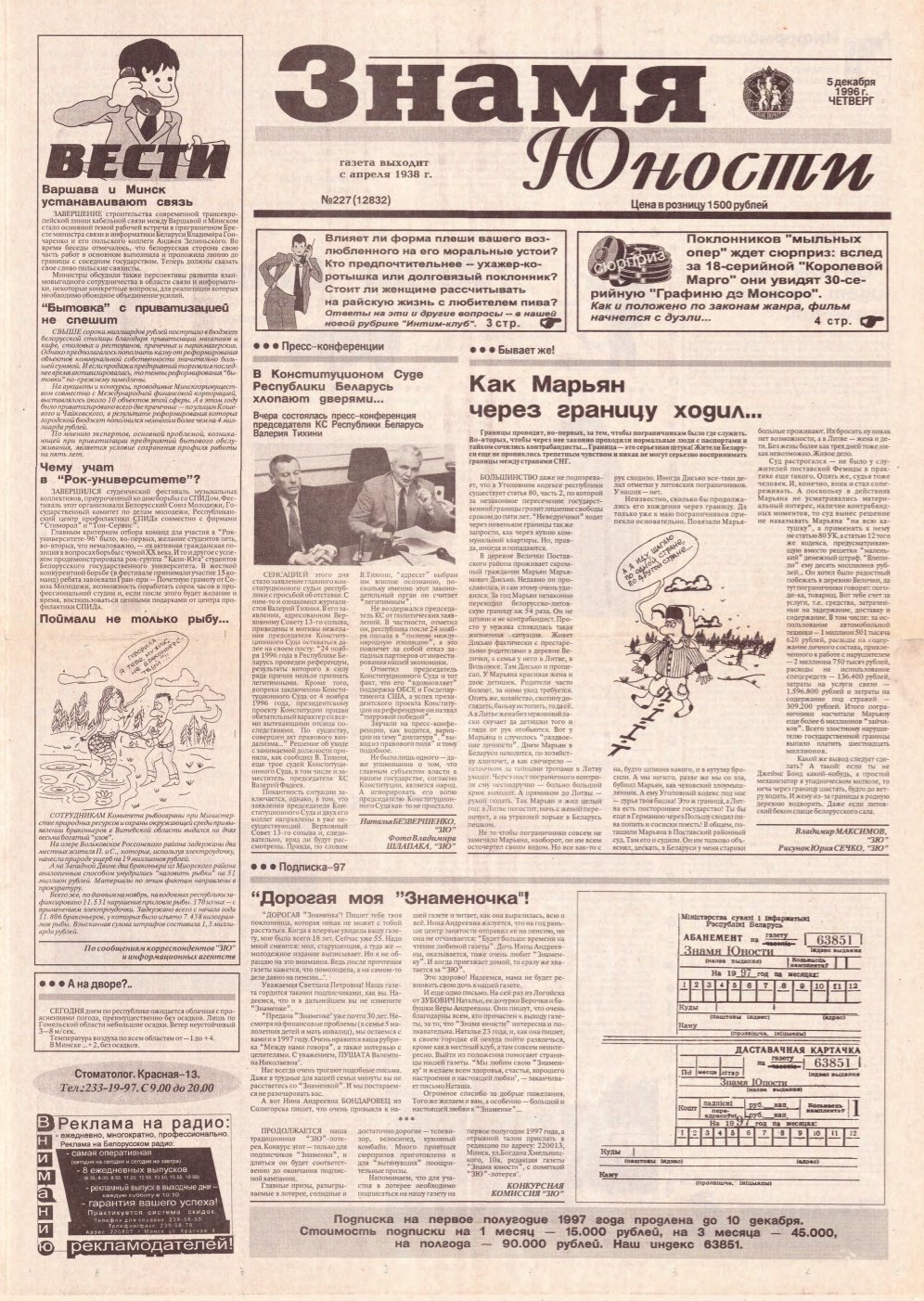Выдавец: Кабинет Министров Республики Беларусь, трудовой коллектив редакции газеты Знамя юности