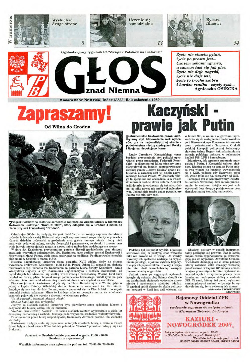 Głos znad Niemna – polskojęzyczny tygodnik wydawany na Białorusi od 3 grudnia 1989 roku; organ prasowy Związku Polaków na Białorusi. Twórcą i pierwszym redaktorem pisma był Eugeniusz Skrobocki z Grodna. Dzięki jego zaangażowaniu pierwsze numery „Głosu znad Niemna” otrzymał Papież Jan Paweł II podczas prywatnej audiencji władz Związku w Watykanie w roku 1990. Pierwszy numer ukazał się jako dodatek specjalny do Czerwonego Sztandaru z okaz... More »