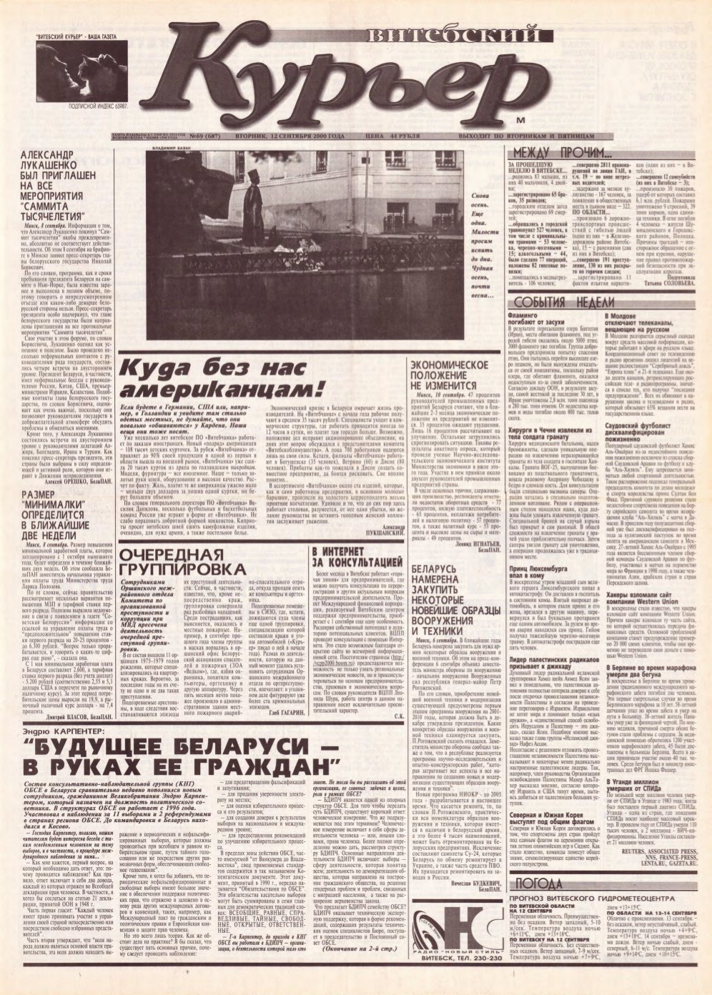 Уважаемые читатели газеты «ВИТЕБСКИЙ КУРЬЕР», информационные, познавательные издания, администрации интернет-ресурсов, масс-медиа, перед вами электронная версия номера нашей газеты, открытого для свободного доступа. При перепечатке, ссылка на нашу газету или сайт обязательна! Все авторские права защищены. Наша редакция знакомится с письмами читателей, не вступая в переписку. Рукописи не рецензируются и не возвращаются. Наша редакция не ... Болей »