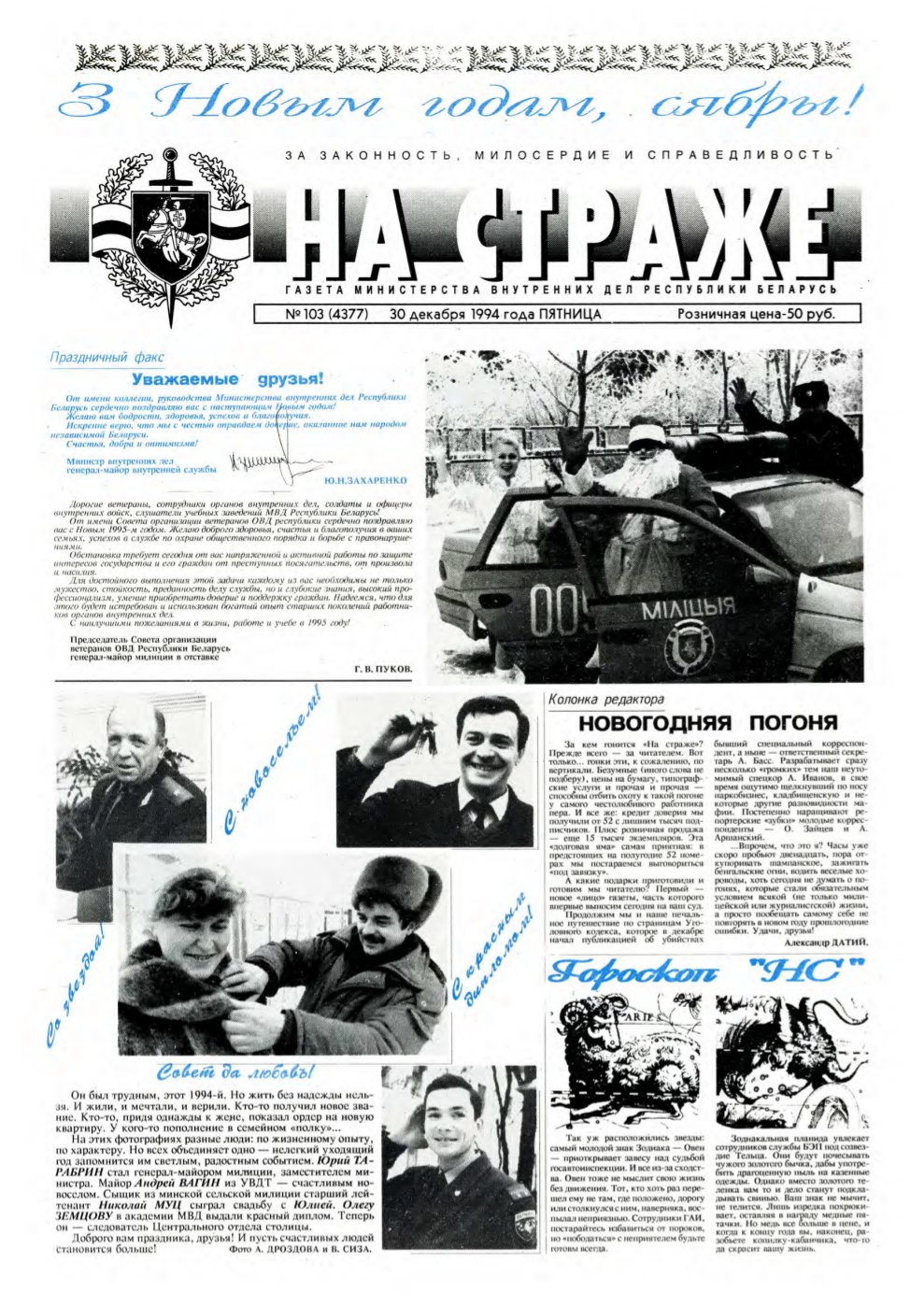 «На страже» — Газета Министерства внутренних дел Республики Беларусь. Выходит во вторник и пятницу. Ранее выпускалась под название «На страже Октября». Ведомственная газета МВД Беларуси. Подписка всех сотрудников милиции на газету обязательна. Болей »