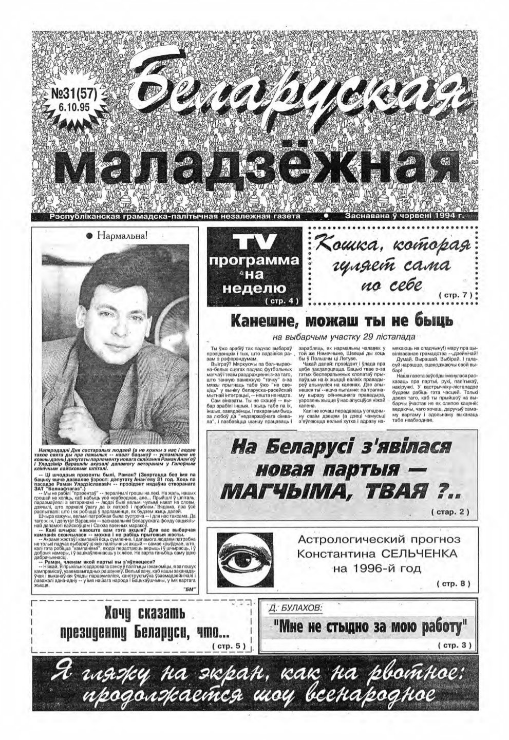 Беларуская маладзёжная (1994 - 2002) - беларуская газэта, дадатак да аднайменнай радыёстанцыі. Зарэгістраваная ў сакавіку 1994 году. У ёй друкаваліся расшыфроўкі радыйных гутарак, анонсы этэраў і ўсё, што не зьмяшчалася ў радыёфармат. Калі радыёстанцыю зачынілі, газэта засталася. Галоўны рэдактар — Тацьцяна Мельнічук. Традыцыйны фармат — 8 старонак А3. Газэта асьвятляла нараджэньне й разьвіцьцё палітычнай апазыцыі сярэдзіны-канца 1990-х... Болей »