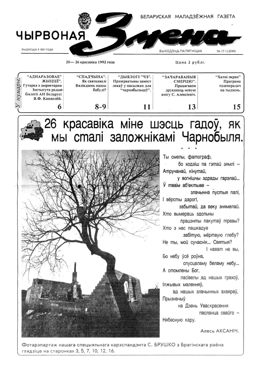 «Чырвоная змена» — беларуская маладзёжная газета. У 1921—2002 гадах з’яўлялася самастойным выданнем. З 2002 года дадатак да газеты «Звязда». З «Чырвонай зменай» ахвотна супрацоўнічаў Уладзімір Караткевіч, тут апублікаваны многія яго вершаваныя творы і эсэ: «Сплятайце рукі», «У тую ноч», «Як стажары ў небе заззялі», «Твой зорны шлях». На старонках газеты была апублікавана і аповесць Васіля Быкава «Жураўліны крык». Болей »