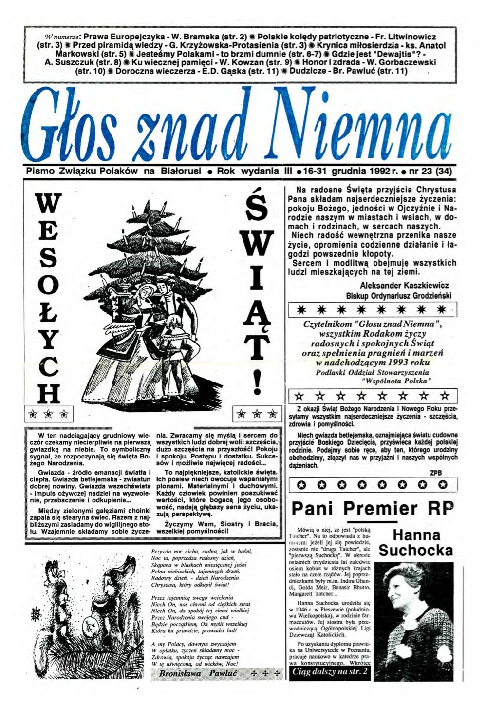 Głos znad Niemna – polskojęzyczny tygodnik wydawany na Białorusi od 3 grudnia 1989 roku; organ prasowy Związku Polaków na Białorusi. Twórcą i pierwszym redaktorem pisma był Eugeniusz Skrobocki z Grodna. Dzięki jego zaangażowaniu pierwsze numery „Głosu znad Niemna” otrzymał Papież Jan Paweł II podczas prywatnej audiencji władz Związku w Watykanie w roku 1990. Pierwszy numer ukazał się jako dodatek specjalny do Czerwonego Sztandaru z okaz... Болей »