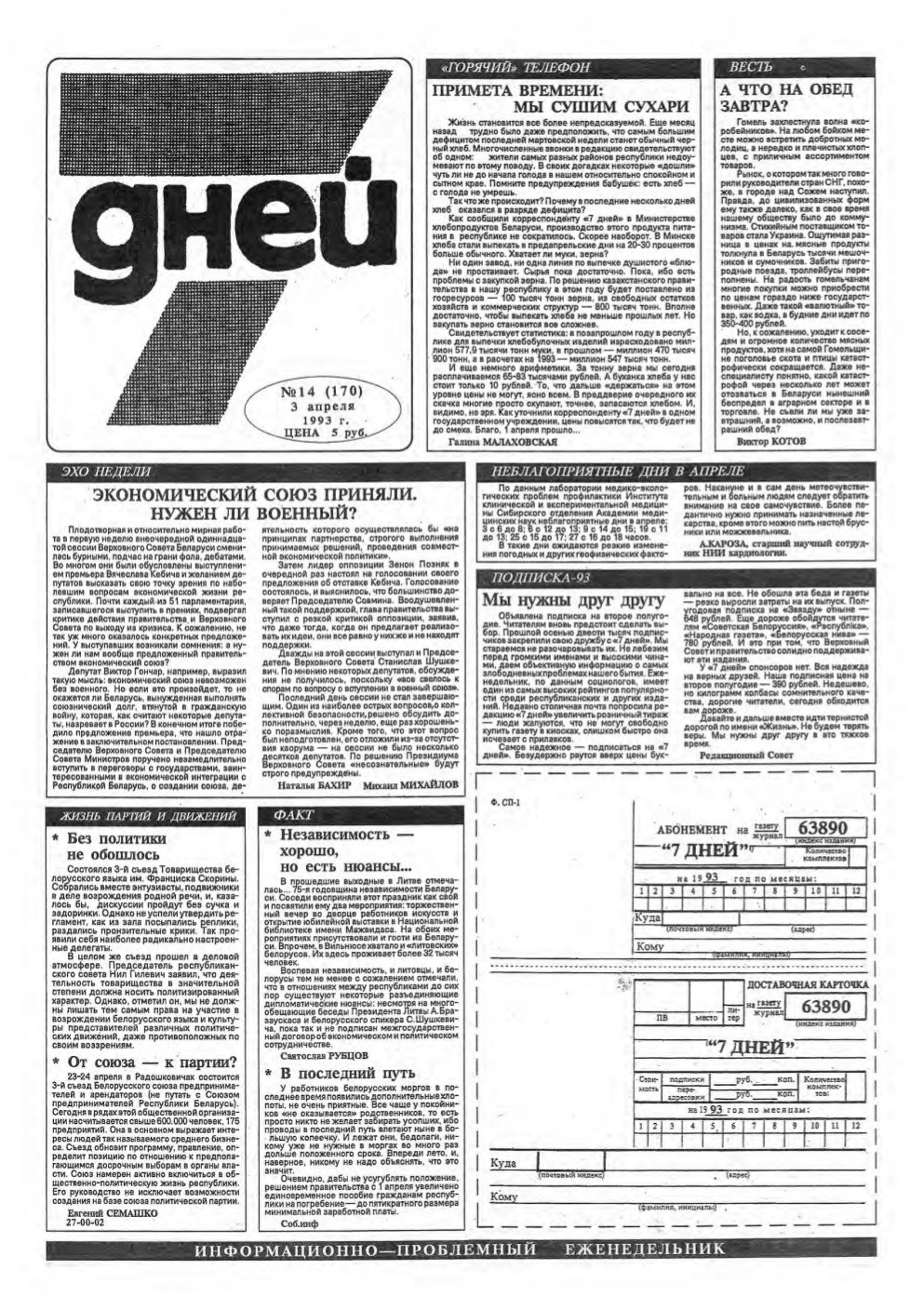 «7 дней» — учредитель: коллектив редакции 7 Дней, Белорусское информационное агентство. Главный редактор Анатолий Лемешенок. Выходит один раз в неделю на русском языке.