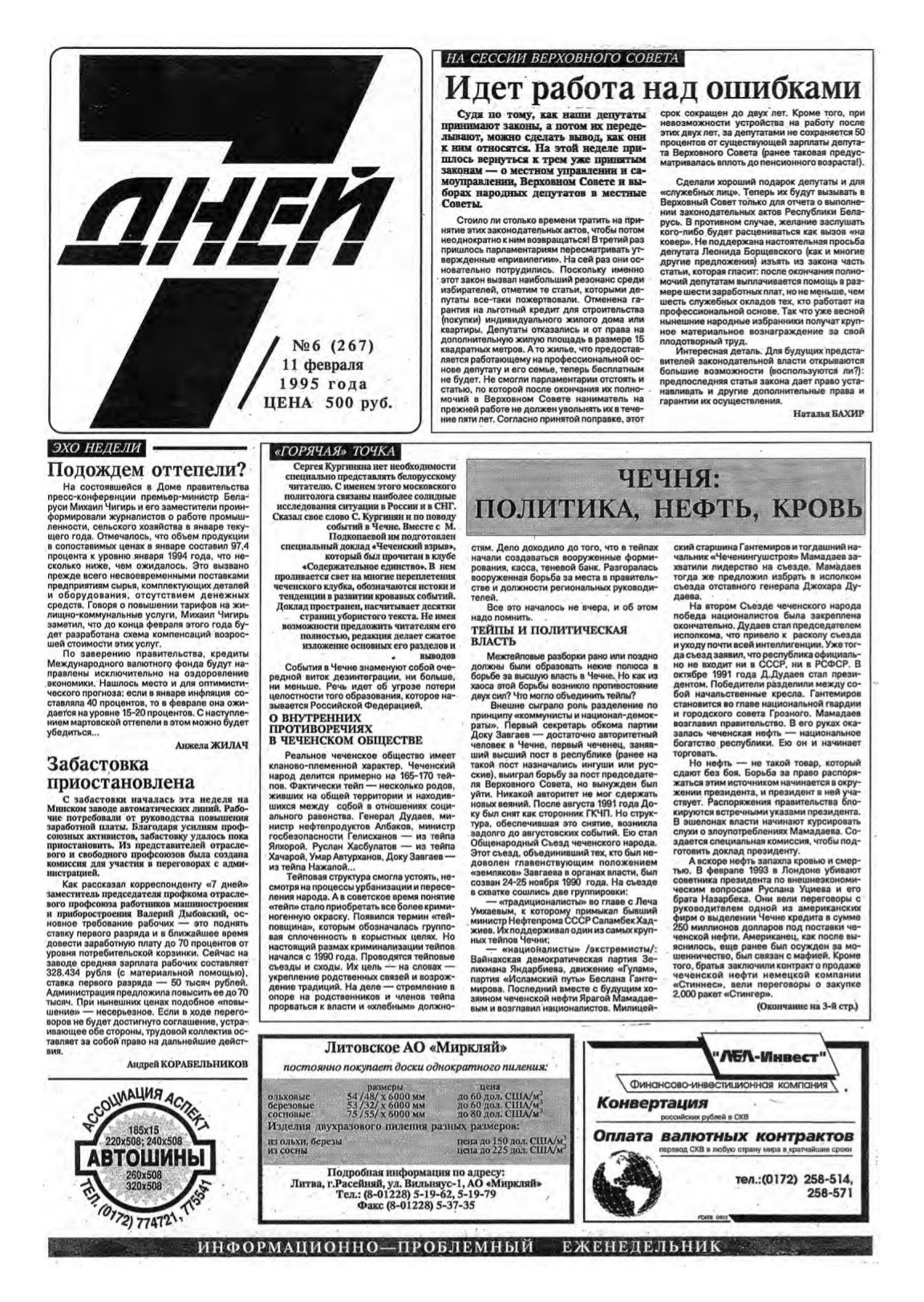 «7 дней» — учредитель: коллектив редакции 7 Дней, Белорусское информационное агентство. Главный редактор Анатолий Лемешенок. Выходит один раз в неделю на русском языке. Болей »