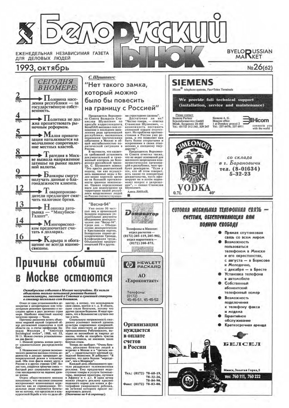 «Белорусский рынок» — независимая индексная газета для деловых людей. Учредитель — МП «Белорусский рынок». Издается при содействии РИА “Новости”. Выходит раз в две недели. Ответственность за точность тгриве-^ денных фактов, цитат, цифр, собственных имен, географических названии и прочихсведенйй^а также за разглашение закрытой информации несут авторы. Редакция может публиковать статьи в порядке обсуждения, не разделяя точку зрения автора.