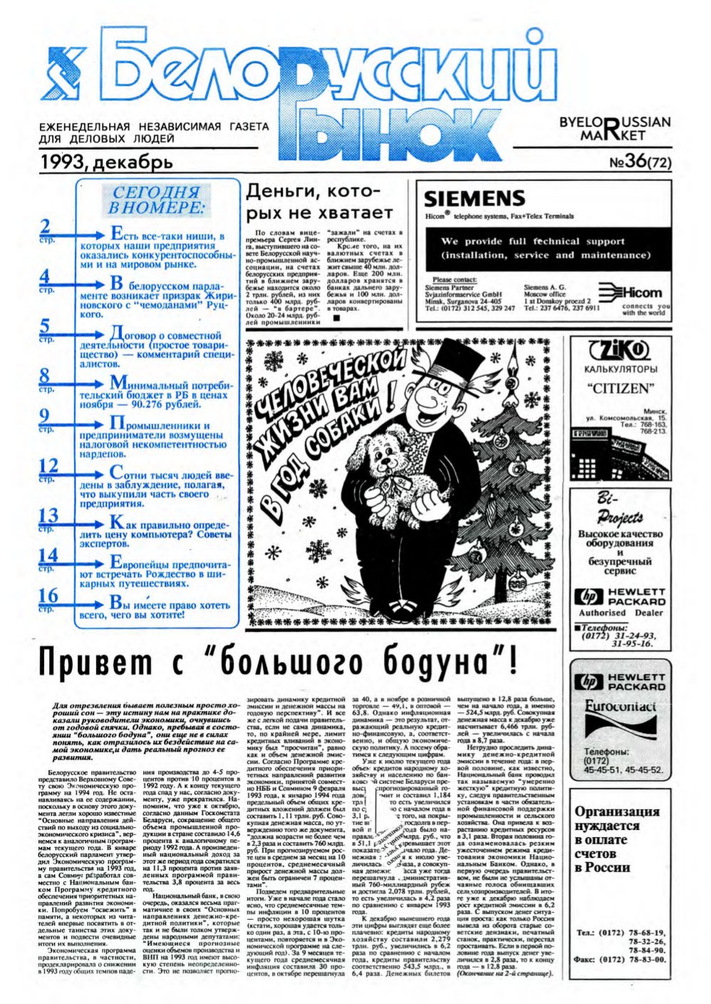 «Белорусский рынок» — независимая индексная газета для деловых людей. Учредитель — МП «Белорусский рынок». Издается при содействии РИА “Новости”. Выходит раз в две недели. Ответственность за точность тгриве-^ денных фактов, цитат, цифр, собственных имен, географических названии и прочихсведенйй^а также за разглашение закрытой информации несут авторы. Редакция может публиковать статьи в порядке обсуждения, не разделяя точку зрения автора.
