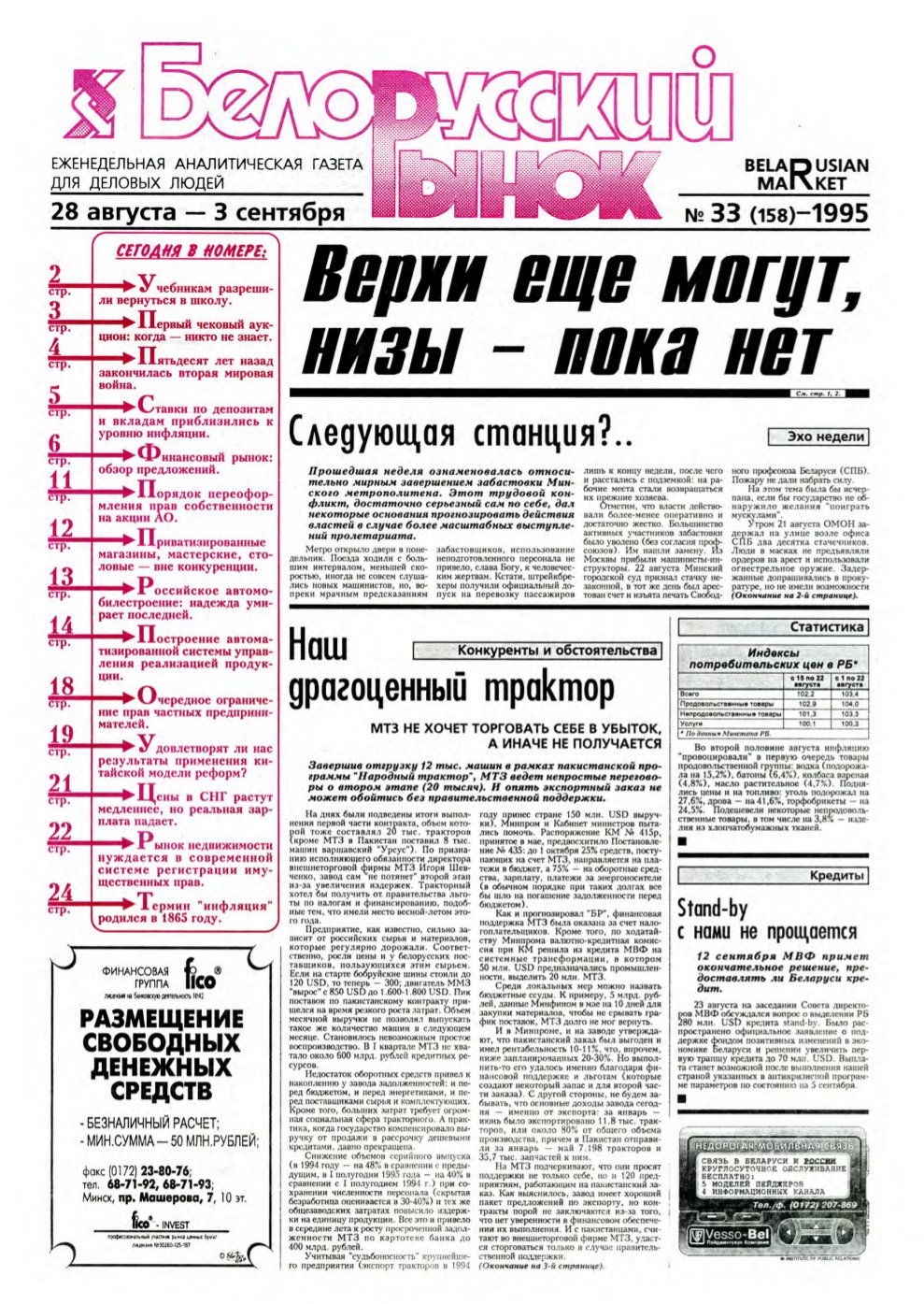 «Белорусский рынок» — независимая индексная газета для деловых людей. Учредитель — МП «Белорусский рынок». Издается при содействии РИА “Новости”. Выходит раз в две недели. Ответственность за точность тгриве-^ денных фактов, цитат, цифр, собственных имен, географических названии и прочихсведенйй^а также за разглашение закрытой информации несут авторы. Редакция может публиковать статьи в порядке обсуждения, не разделяя точку зрения автора... Болей »
