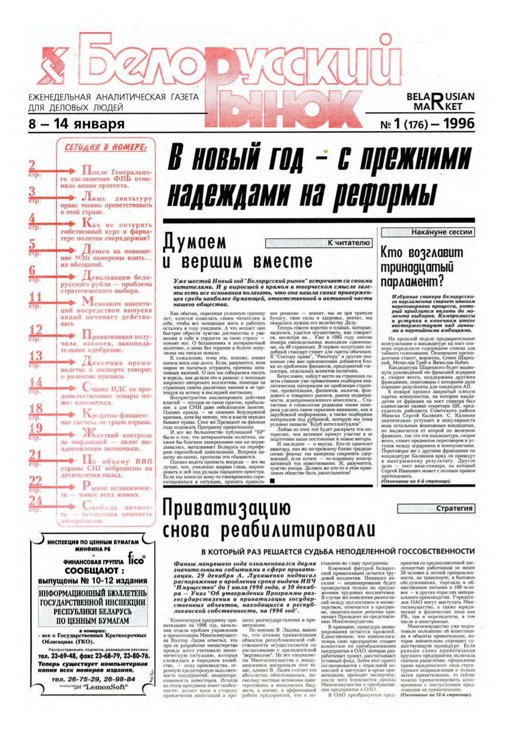 «Белорусский рынок» — еженедельная аналитическая газета для деловых людей. Учредитель — КМП «Белорусский рынок». Издается при содействии РИА “Новости”. Выходит раз в две недели. Ответственность за точность приведенных фактов, цитат, цифр, собственных имен, географических названий и прочих сведенйй а также за разглашение закрытой информации несут авторы. Редакция может публиковать статьи в порядке обсуждения, не разделяя точку зрения авт... Болей »