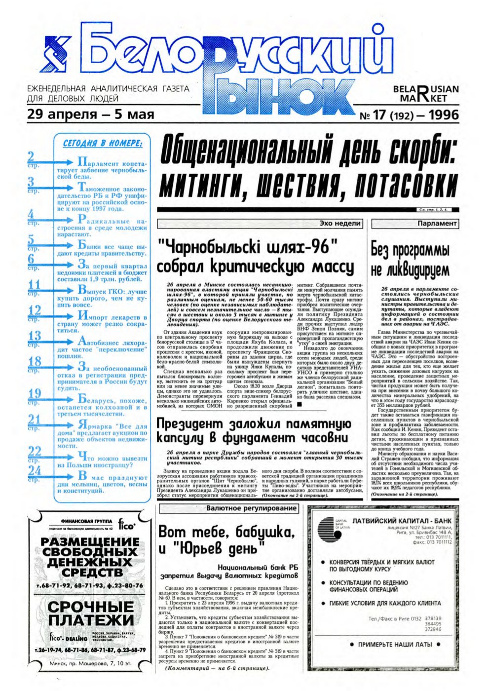 «Белорусский рынок» — независимая индексная газета для деловых людей. Учредитель — МП «Белорусский рынок». Издается при содействии РИА “Новости”. Выходит раз в две недели. Ответственность за точность тгриве-^ денных фактов, цитат, цифр, собственных имен, географических названии и прочихсведенйй^а также за разглашение закрытой информации несут авторы. Редакция может публиковать статьи в порядке обсуждения, не разделяя точку зрения автора.