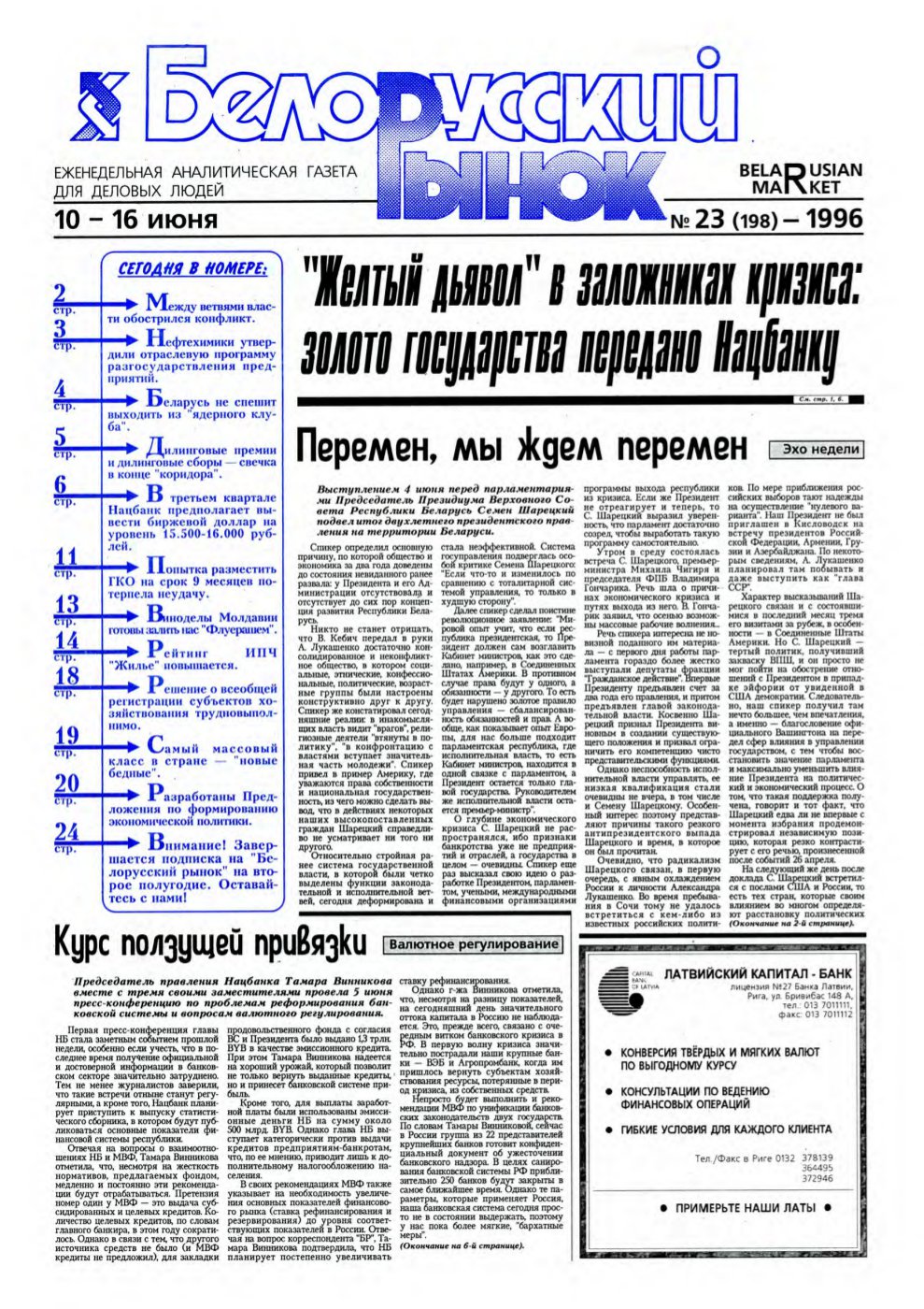 «Белорусский рынок» — еженедельная аналитическая газета для деловых людей. Учредитель — КМП «Белорусский рынок». Издается при содействии РИА “Новости”. Выходит раз в две недели. Ответственность за точность приведенных фактов, цитат, цифр, собственных имен, географических названий и прочих сведенйй а также за разглашение закрытой информации несут авторы. Редакция может публиковать статьи в порядке обсуждения, не разделяя точку зрения авт... Болей »