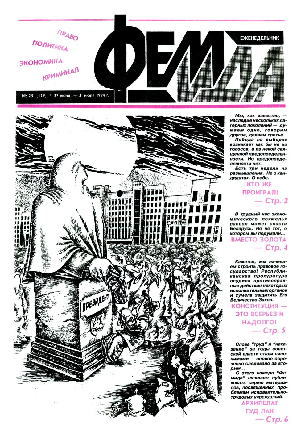 «Феміда» — политико-правовая газета. Заснавальнікі: ВПК Эрыдан, Саюз юрыстаў Беларусі. Аўтары апублікаваных матэрыялаў нясуць адказнасць за падбор і дакладнасць фактаў, іх меркаванні не абавязкова адлюстроўваюць пункт гледжання рэдакцыі. Пры лерадрукоўцы сласылка на "Феміду" абавязковая. Болей »