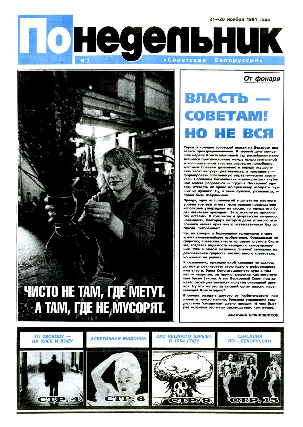 «Понедельник» — Советская Белоруссия. Учредитель: журналистский коллектив редакции газеты «Советская Белоруссия». Редакция может опубликовать материал в порядке обсуждения, не разделяя точку зрения автора. Редакция оставляет за собой право не вступать в переписку с читателями. Материалы не рецензируются и не возвращаются. Болей »