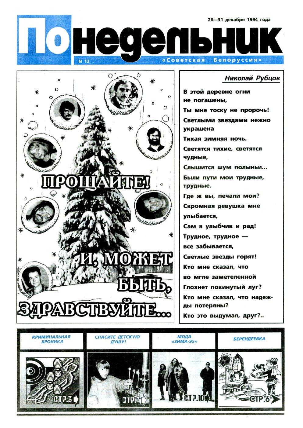 «Понедельник» — Советская Белоруссия. Учредитель: журналистский коллектив редакции газеты «Советская Белоруссия». Редакция может опубликовать материал в порядке обсуждения, не разделяя точку зрения автора. Редакция оставляет за собой право не вступать в переписку с читателями. Материалы не рецензируются и не возвращаются. Болей »