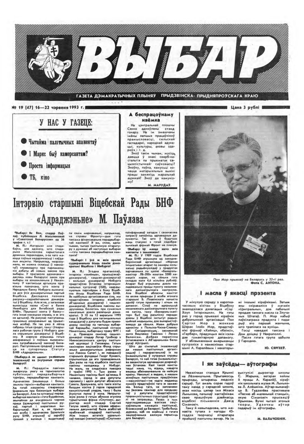 Газэта “Выбар” выдавалася ў Віцебску з 1991 году. Гэта бадай самае першае віцебскае дэмакратычнае выданьне. Сваю мэту рэдакцыя газэты ў яе першым нумары з 2 кастрычніка 1991 году фармулявала наступным чынам: Будзем дапамагаць новым і перагленуўшым свае мінулыя пазыцыі старым грамадзкім сілам выцягваць Беларусь з 73-гадовай пустыні, падносіць з каленяў змучаны і чакаючы чарговых сацыяльна-эканамічных крызісаў народ для пабудовы сапраўдна... Болей »