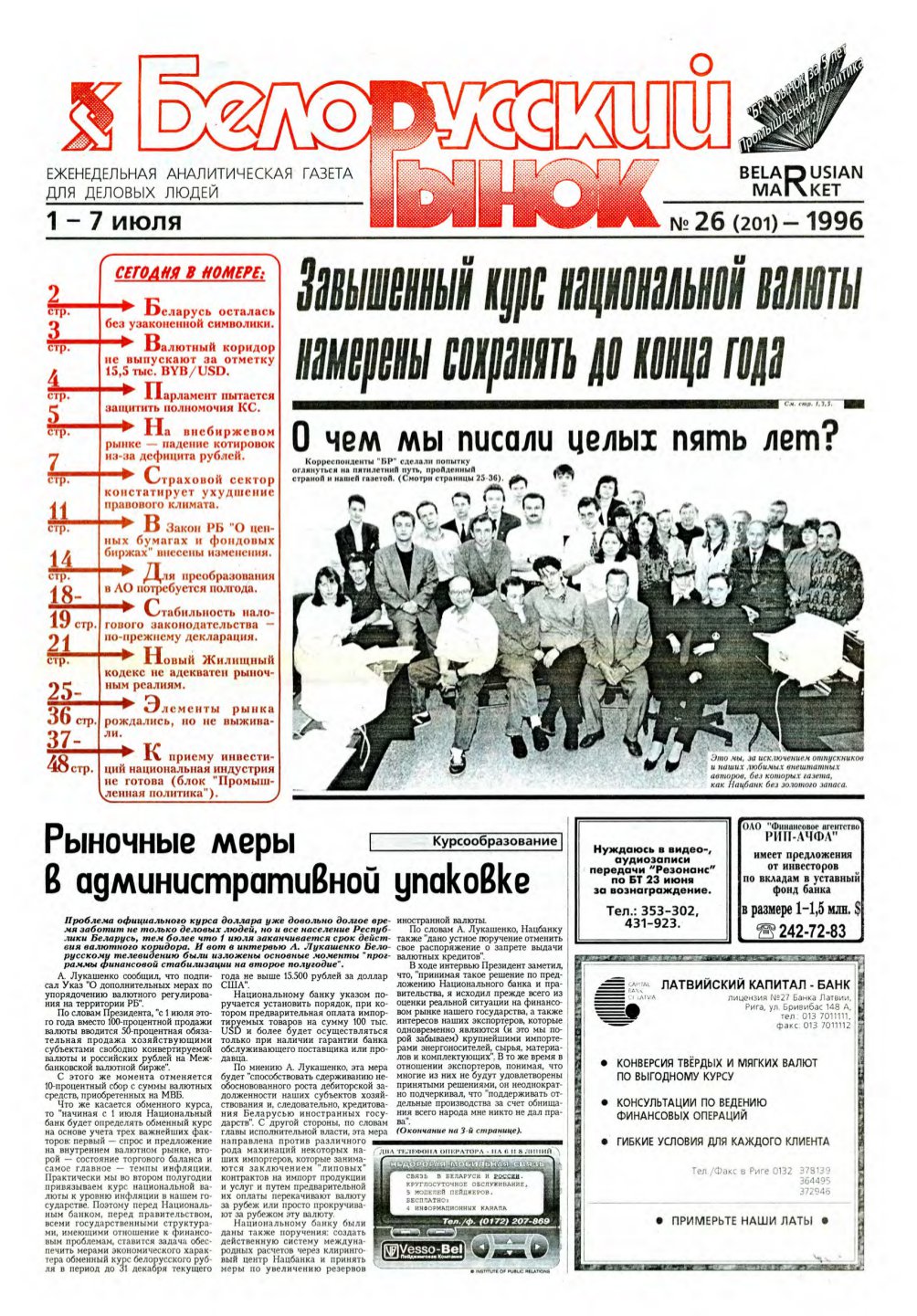 «Белорусский рынок» — еженедельная аналитическая газета для деловых людей. Учредитель — КМП «Белорусский рынок». Издается при содействии РИА “Новости”. Выходит раз в две недели. Ответственность за точность приведенных фактов, цитат, цифр, собственных имен, географических названий и прочих сведенйй а также за разглашение закрытой информации несут авторы. Редакция может публиковать статьи в порядке обсуждения, не разделяя точку зрения авт... Болей »