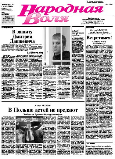 В защиту Дмитрии Дашкевича В Беларуси создан комитет в защиту Дмитрия Дашкевича. Один из лидеров незарегистри­рованного "Молодого фронта" в настоящее время отбывает на­казание за деятельность от имени незарегистрированной организации, однако в настоящее время в суд Шкловского района поступило новое уго­ловное дело на Дмитрия - за отказ от дачи показаний на своих товарищей по организа­ции. Дата слушаний пока не на­значена, однако уже известно, что дело поступило на рассмотрение судье Татьяне Кашкиной. Общественные активисты уже направили письмо в адрес судьи с требованием прекра­тить преследование молодеж­ного активиста. (фрагмэнт, больш падрабязна ў PDF-файле)