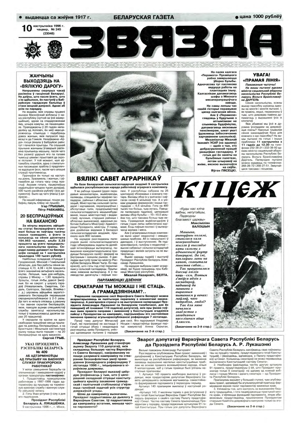 «Звязда» — Беларуская газэта. Выходзіць 250 разоў на год. Аўтары апублікаваных матэрыялаў нясуць адказнасць за падбор і дакладнасць фактаў. Іх меркаванні неабавязкова адлюстроўваюць пункт гледжання рэдакцыі. Болей »