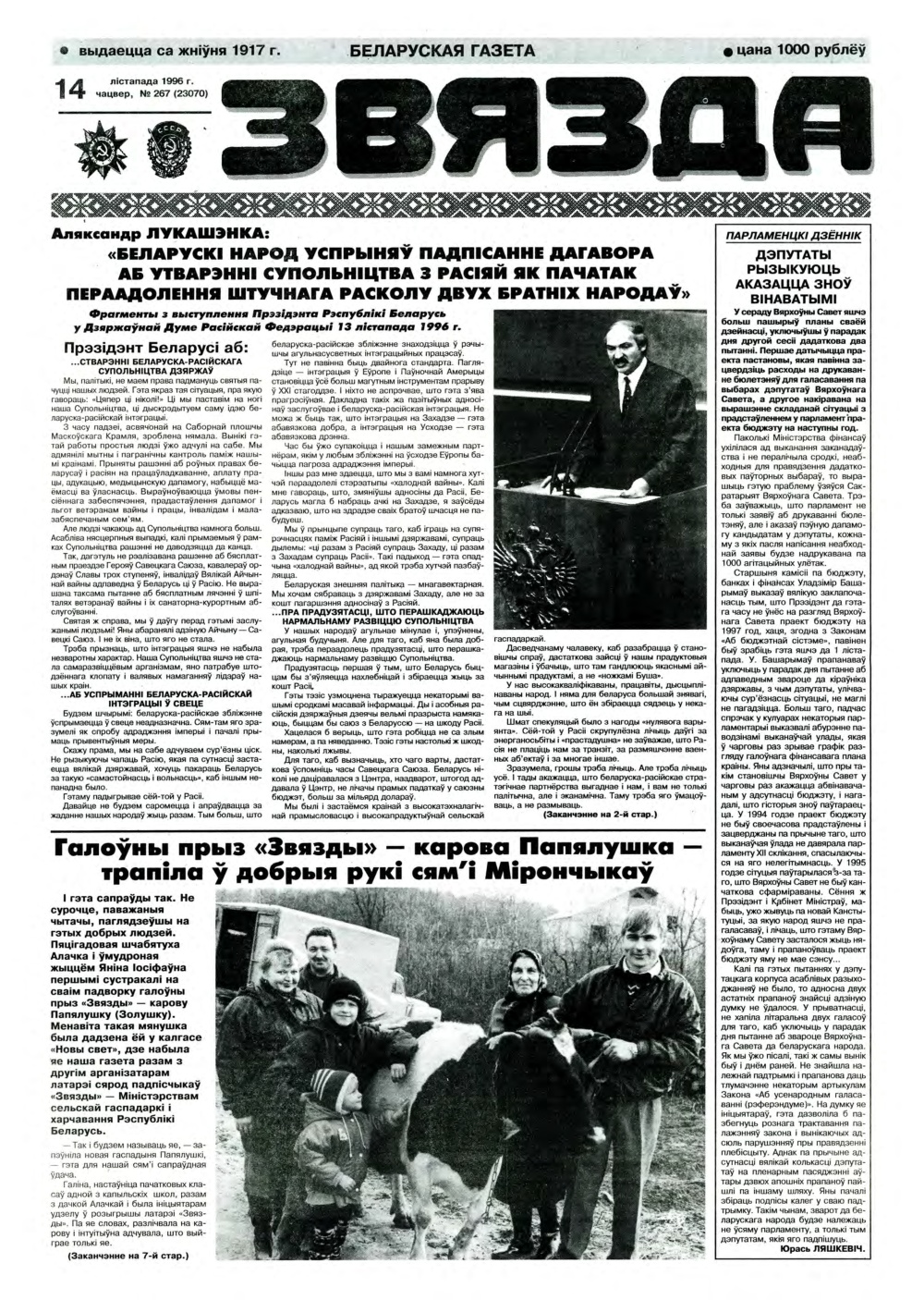 «Звязда» — Беларуская газэта. Выходзіць 250 разоў на год. Аўтары апублікаваных матэрыялаў нясуць адказнасць за падбор і дакладнасць фактаў. Іх меркаванні неабавязкова адлюстроўваюць пункт гледжання рэдакцыі. Болей »