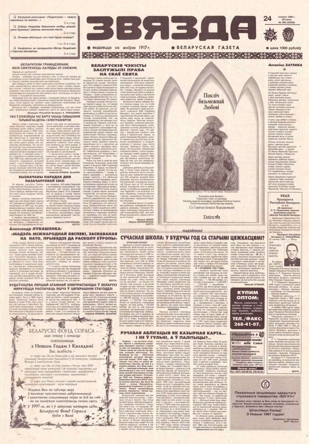 «Звязда» — Беларуская газэта. Выходзіць 250 разоў на год. Аўтары апублікаваных матэрыялаў нясуць адказнасць за падбор і дакладнасць фактаў. Іх меркаванні неабавязкова адлюстроўваюць пункт гледжання рэдакцыі. Болей »