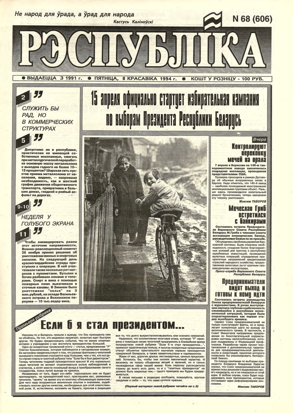 «Рэспубліка» — газета для тых, хто самастойна прымае рашэнні. Заснавальнік - Савет Міністраў Рэспублікі Беларусь. Выдаецца з чэрвеня 1991. Газета выходзіць 250 разоў у год. Аўтары апублікаваных матэрыялаў нясуць адказнасць за падбор і дакладнасць фактаў, іх меркаванні неабавязкова адлюстроўваюць пункт гледжання рэдакцыі. Рукапісы, фотаздымкі і малюнкі не рэцэнзуюцца I не вяртаюцца. Болей »